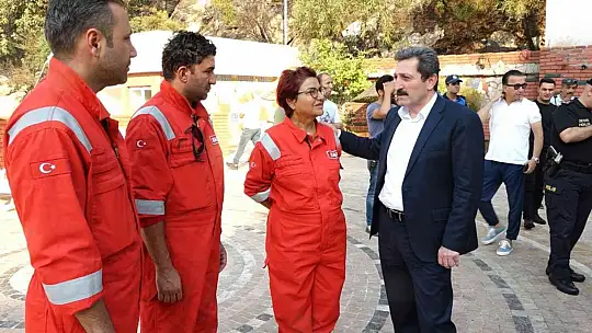 İki gün üst üste yangın felaketi yaşayan Marmaris'te, Belediye Başkanı Mehmet Oktay başkan yardımcıları, birim amirleri ve söndürme ekiplerine lojistik destek veren ekiplerle birlikte yangın bölgesinde yer aldı.