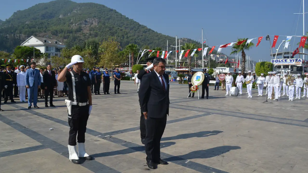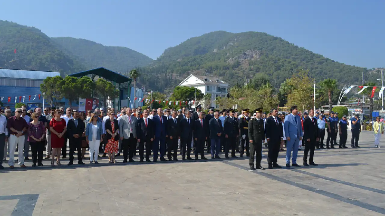 Beşkaza Meydanı Atatürk Anıtı önünde gerçekleşen törene Fethiye Kaymakamı Alper Balcı beraberinde Fethiye Belediye Başkanı Alim Karaca, Fethiye Cumhuriyet Başsavcısı Günşafak Karartı, Fethiye İlçe Emniyet Müdürü Kayhan Dadaşoğlu, Garnizon Komutanı Personel Asteğmen Cemal Yalçın, Siyasi Parti Başkanları, STK temsilcileri ve çok sayıda vatandaş katıldı.