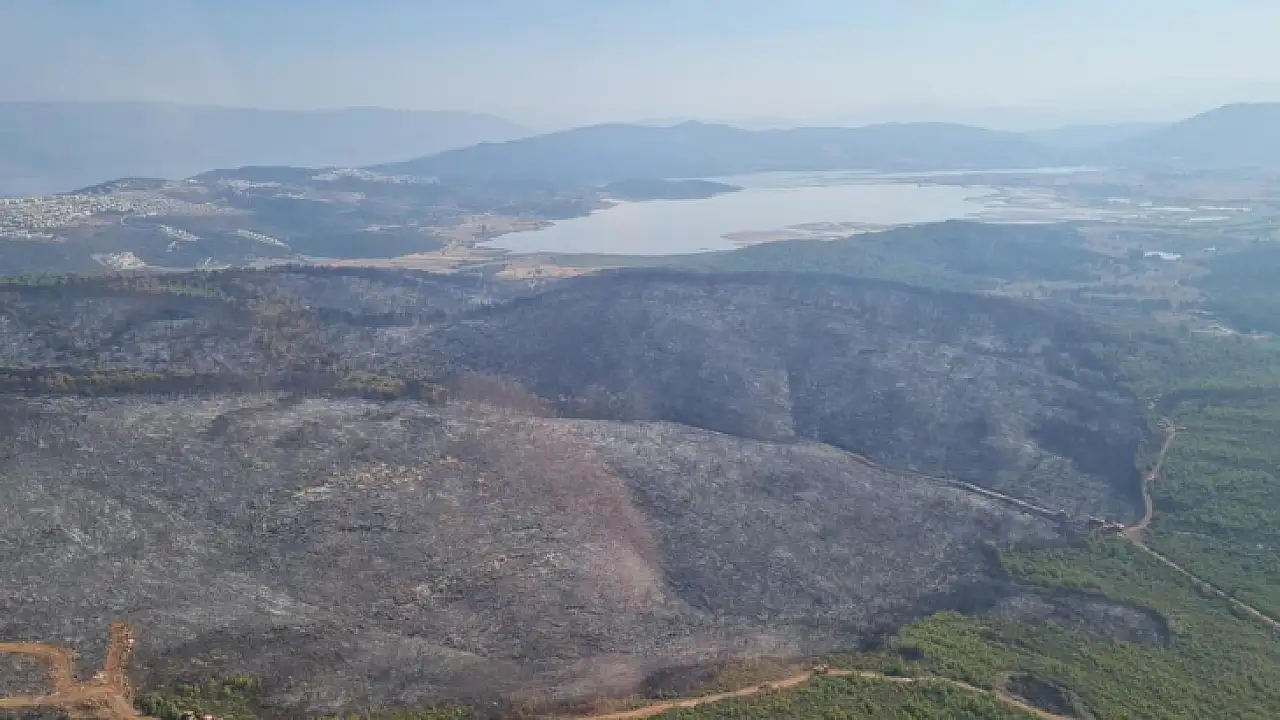 Muğla'nın Milas ilçesi Boğaziçi Mahallesi'nde havadan ve karadan yoğun müdahale ile kontrol altına alınabilen yangının bilançosu havadan görüntülendi. Nefes isimli helikopter ise yangında 72 sorti yaparak rekor kırdı.