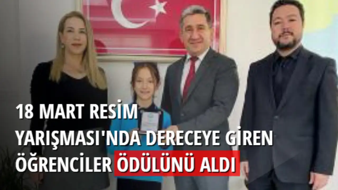 18 MART RESİM YARIŞMASI'NDA DERECEYE GİREN ÖĞRENCİLER ÖDÜLÜNÜ ALDI
