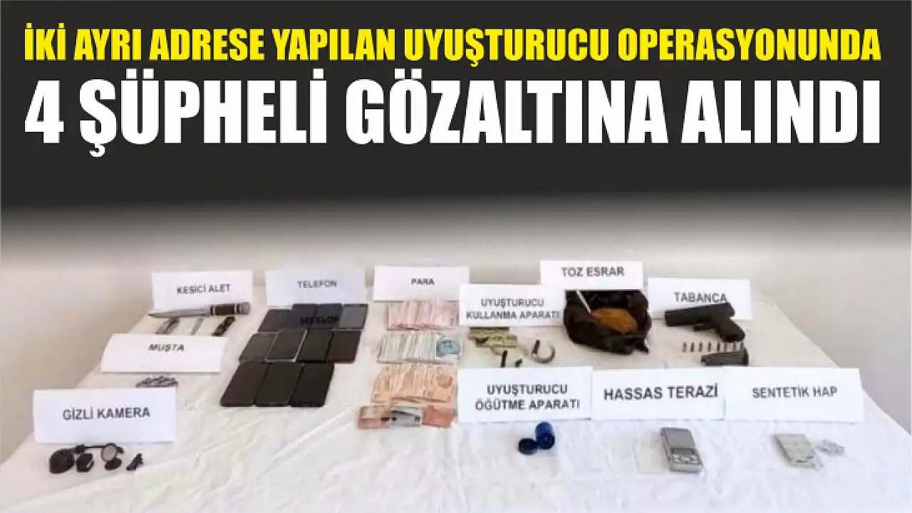 Muğla'nın Bodrum ilçesinde jandarma ekiplerince iki ayrı adrese yapılan uyuşturucu operasyonunda 4 şüpheli gözaltına alındı.