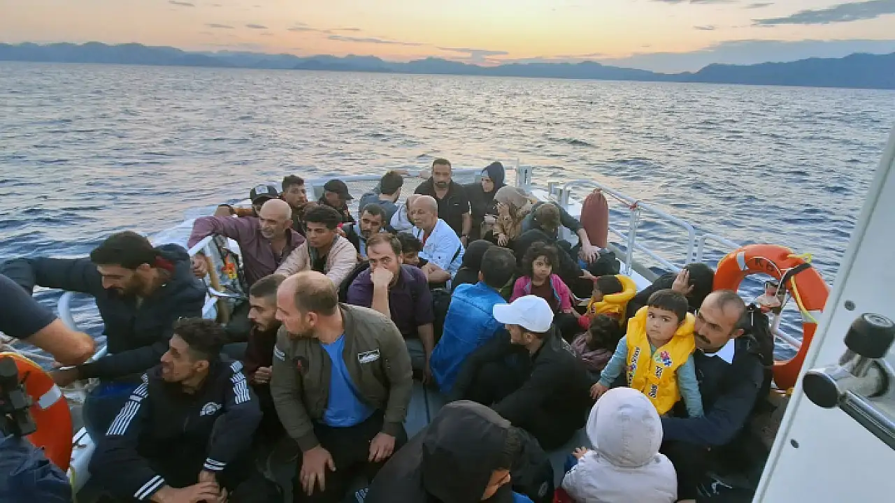Muğla'nın Marmaris ilçesi açıklarında Yunanistan sahil güvenlik unsurları tarafından Türk karasularına geri itilen 49 düzensiz göçmen kurtarıldı.