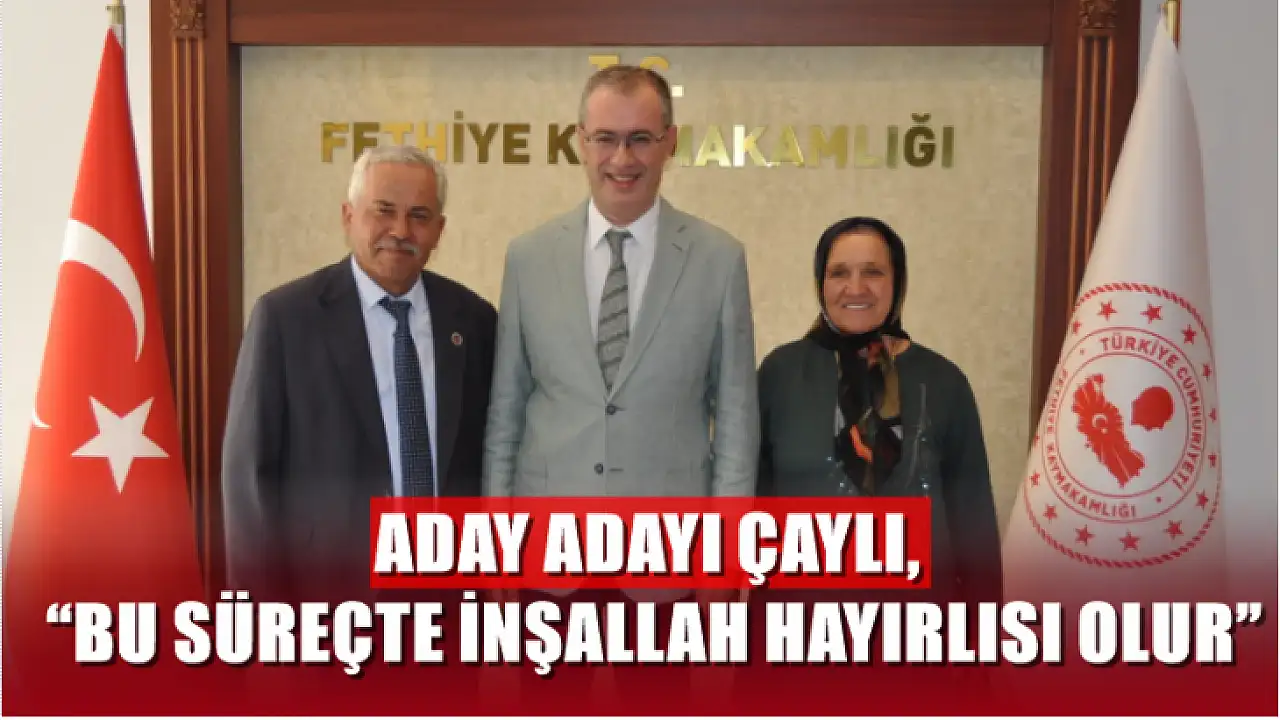 Sohbet havasında geçen ziyaret sonrasında Çaylı, açıklamalarda bulundu: “Fethiye Belediye başkan aday adayıyım. Bu kapsamda Fethiye Kaymakamı İsmail Hakkı Ertaş’ı ziyaret ettik. Sohbet eşliğinde bir ziyaret oldu. Bu süreçte inşallah hayırlısı olur. Fethiye için İnşallah hayırlısı olacaktır Fethiye’miz için. Daha ziyaretlerimiz devam edecektir.”