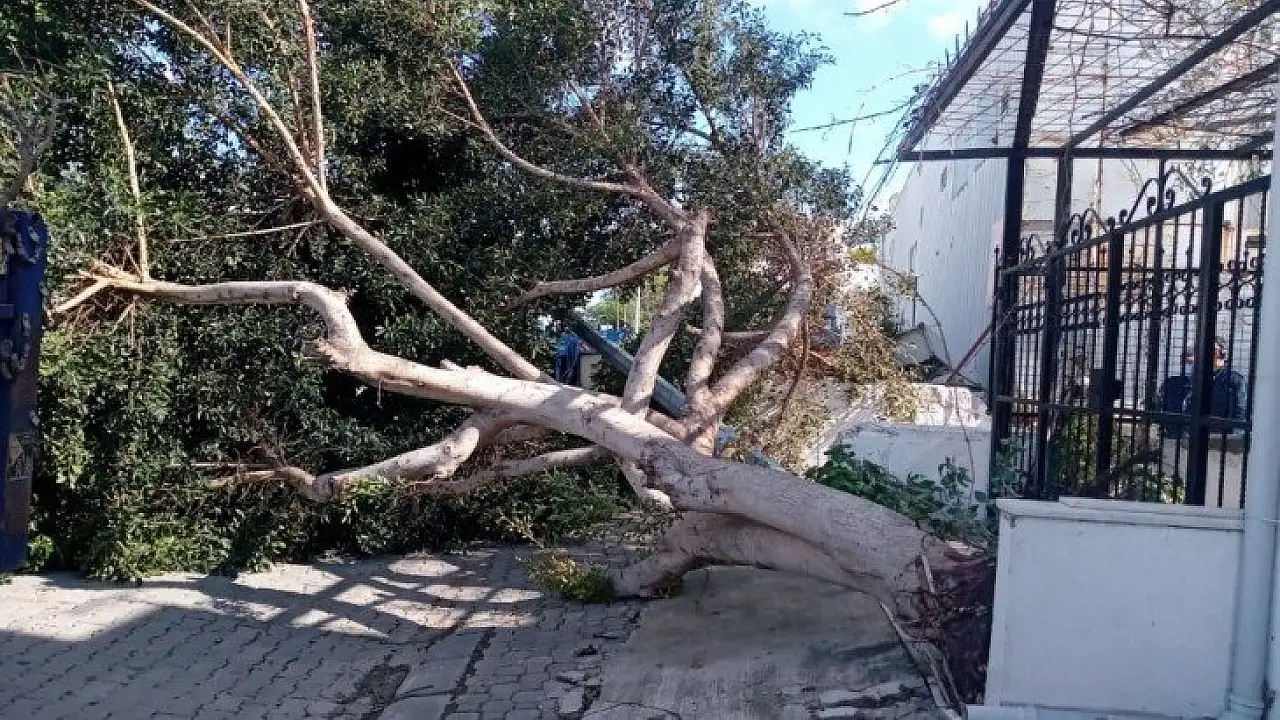 Muğla'nın Bodrum ilçesinde kuzey yakasından başlayan ve saatteki hızı gece 80 km'ye ulaşan kuvvetli fırtınaya dayanamayan onlarca ağaç kırıldı, elektrik direkleri devrildi.
