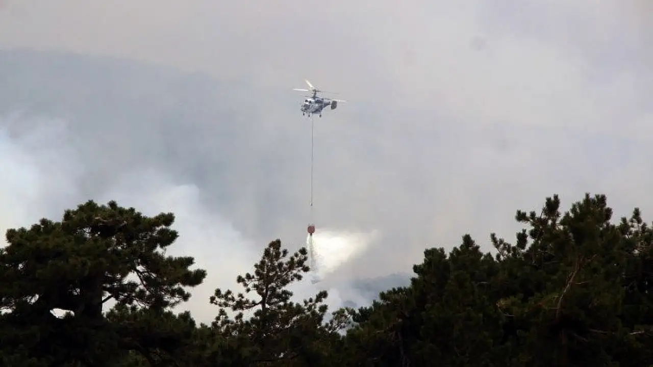 Göktepe dağı mevkiinde devam eden yangına havadan 3 helikopter müdahale ediyor. Bölgede Göktepe dağının zirvesinde bulunan TRT verici istasyonu ve Orman Yangın Kulesinin hemen alt bölümlerinde devam eden orman yangını verici istasyonuna kozalak fırlaması sonucu duvarlarda kısmi yanma meydana geldi.
