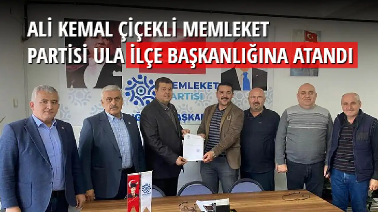 Memleket Partisi Ula İlçe Başkanlığı örgütünü kurmak üzere başkanlığa Ali Kemal Çiçekli atandı. Çiçekli, Muğla İl Başkanı İbrahim Şimşek’ten yetki belgesini alarak çalışmalarına başladı. Memleket Partisi Muğla İl Başkanlığı tarafından yapılan paylaşımda, “Ula ilçemize hayırlı olsun. Memleket Partisi Ula İlçe örgütünü kurmak üzere Ali Kemal Çiçekli görevlendirildi. Memleket Partisi Muğla İl Başkanı İbrahim Şimşek’ten yetki belgesini alarak çalışmalara başlayan Ali Kemal Çiçekli memleketimizin geleceği için bizimde sorumluluk almamız gerektiğini düşünerek bu göreve talip olduğunu bildirdi” denildi.