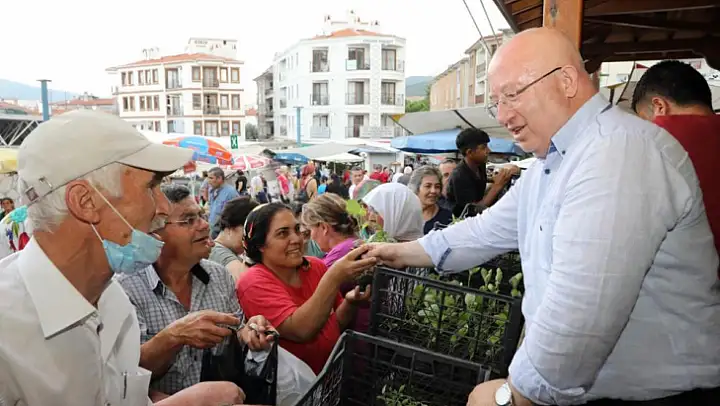 Menteşe Belediye Başkanı Bahattin Gümüş, belediye olarak pandemi sürecinde ve ekonomik krizin yaşandığı dönemde ata tohumlarını destekleyen tarım politikasını her geçen gün geliştirdiklerini belirterek şunları söyledi: “ Sağlıklı gıdaya ancak güçlü tarım politikaları ile ulaşabiliriz. Bu düşünceyle geçtiğimiz yıllarda başlattığımız Tarımsal Kalkınma Projemizi zaman içinde geliştirdik. Kendi arazilerimizde yerli ata tohumlarımızı ektik, elde ettiğimiz ürünleri halkımızla paylaştık. Bugün de bölgemizin en büyük Pazar yerlerinden olan Perşembe Pazarında halkımıza domates ve patlıcan fidesi dağıttık. Kendi üretim tesislerimizde ata tohumlarımızdan yetiştirdiğimiz sebzelerimiz vatandaşlarımızın bağında bahçesinde yetişecek. Menteşe Belediyesi olarak bereketli topraklarımızın kıymetini biliyor, işliyor, üretiyor ve paylaşıyoruz. Bizler; üretmeye, üreten çiftçimize ve vatandaşımıza destek vermeye, ata tohumu fidelerimizi ve ürünlerimizi halkımızla paylaşmaya devam edeceğiz