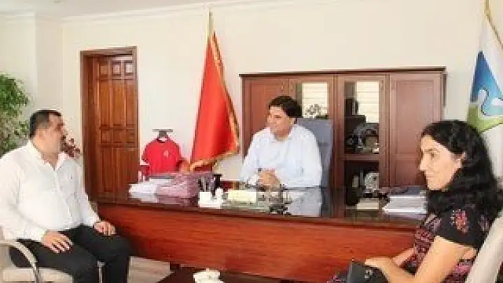 Fethiye Altı Nokta Körler Derneği yeni yönetim kurulu üyeleri Başkan Emrah Yalçın Fethiye Belediye Başkanı Alim Karaca'yı ziyaret ettiler.