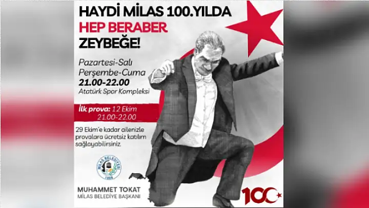 Cumhuriyetin ilanının 100. yıl dönümünü Milas'a yakışacak etkinliklerle kutlamaya hazırlanan Milas Belediyesi, vatandaşları 29 Ekim Pazar günü saat 19.23'te Atapark'ta gerçekleşecek Harmandalı gösterisine davet etti.