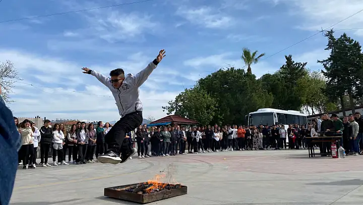 Fethiye Şehit Yüzbaşı Özgür Özekin Mesleki ve Teknik Anadolu Lisesi idarecileri, öğretmenleri ve öğrencileri Bahar (Nevruz) Bayramı'nı okul bahçesinde ateş yakarak ve demir döverek kutladılar.