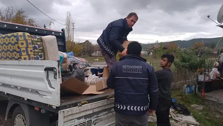 Seydikemer Belediyesi, Ortaköy Mahallesi'nde henüz bilinmeyen bir nedenden dolayı çıkan yangında evleri kullanılamaz hale gelen Akçay ailesine eşya yardımında bulundu.