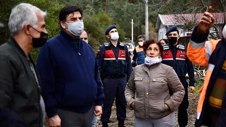 Fethiye Belediye Başkanı Alim Karaca, İnlice Mahallesinde hortumzedeleri ziyaret edip, geçmiş olsun dileklerinde bulunurken, belediye temizlik işleri ekipleri de yıkılan ağaçları kaldırıp vatandaşların yardımına koştu.