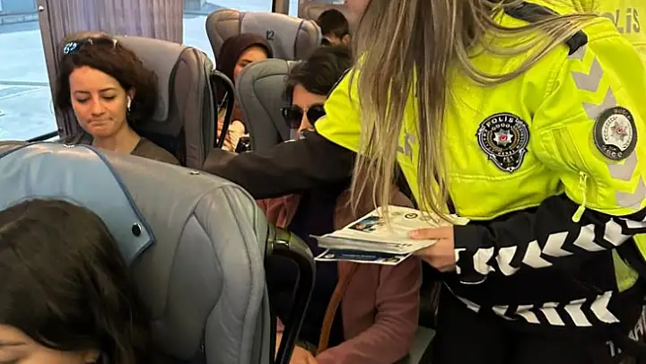 Trafik tedbirleri çerçevesinde Muğla Emniyet Müdürlüğü Trafik Tescil ve Denetleme Şube Müdürlüğü ekipleri şehirlerarası terminallere giriş-çıkış yapan bütün otobüs ve şoförleri üzerinde trafik denetimi yaptı. Otobüslerin terminal çıkışı öncesinde içindeki yolculara otobüslerin karıştığı trafik kazalarında araçların devrilmesi ve araçtan dışarı savrulmalarının önlenmesi amacıyla emniyet kemeri kullanmalarının yasal zorunluluk olduğu hatırlatılarak, “Emniyet kemeri ile güvenli trafik bir hareketine bakar. Bu yolda sana çok güveniyoruz” uyarısı yolculara aktarılırken, emniyet kemeri kontrolleri gerçekleştirildi.