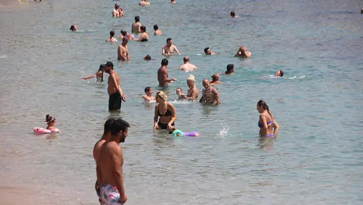Yerli ve yabancı turistler, bunaltıcı sıcakta denize girerek serinlerken sokakların boş kaldığı görüldü.