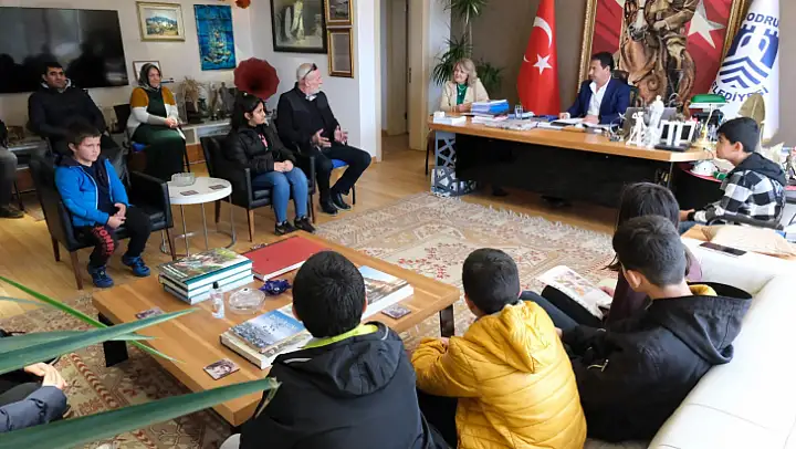 Bodrum Kent Konseyi'nin çalışma yönergesinin 11. maddesi gereğince kurulan Çocuk Meclisi, Bodrum Belediye Başkanı Ahmet Aras'ı makamında ziyaret etti.