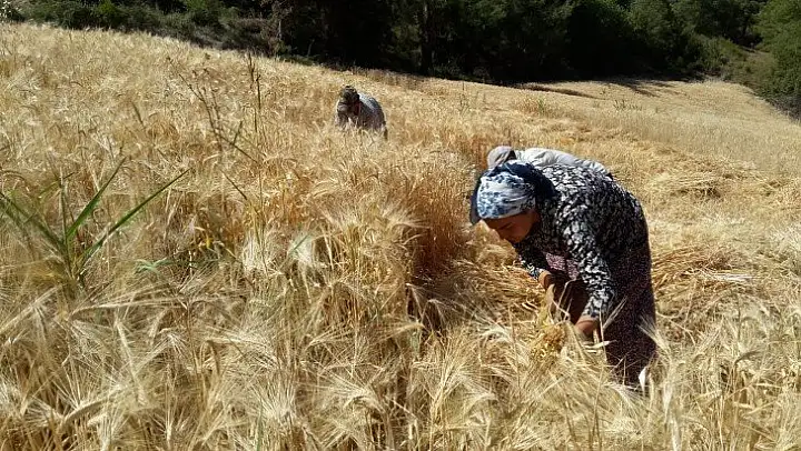 Buğday hasadını geleneksel yöntemlerle yapıyorlar