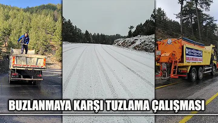Muğla Büyükşehir Belediyesi ekipleri yüksek kesimlerde bulunan grup yollarında buzlanmaya karşı tuzlama çalışması yaptı.