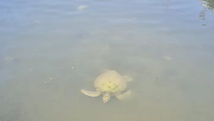 Fethiye'de caretta carettalar, Salı Pazarı'nın yanında bulunan Devlet Su İşleri (DSİ) kanalında yüzerken objektiflere yansıdı. Vatandaşlar, nesli koruma altında olan deniz kaplumbağalarını şaşkınlık ve ilgiyle izledi.