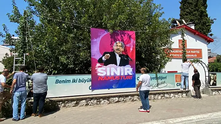 İktidarın göç politikasına tepki gösteren Cumhuriyet Halk Partisi (CHP) Fethiye İlçe Başkanlığı ilçe binasına Genel Başkan Kemal Kılıçdaroğlu'nun fotoğrafının da bulunduğu 'Sınır namustur' pankartı astı.