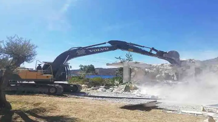 Milas Belediyesi sınırları içerisinde yer alan Çökertme Mahallesi'ndeki kaçak yapılar yıkılmaya başlandı.