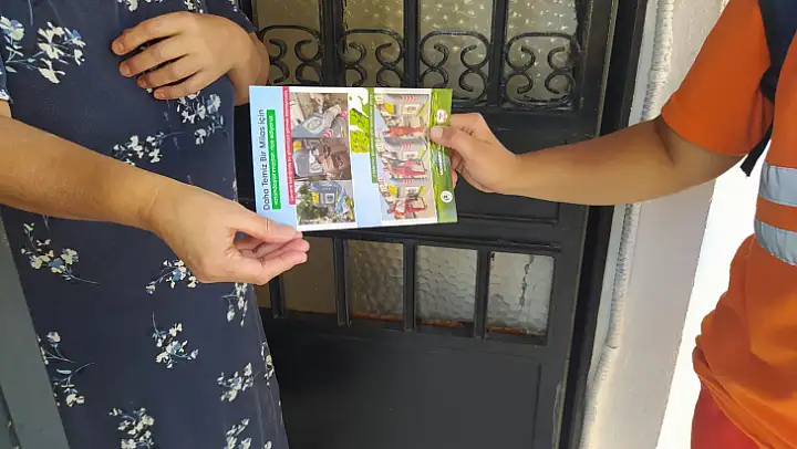Milas Belediyesi Temizlik İşleri Müdürlüğü, pilot mahallelere yerleştirilen akıllı sistem çöp konteynerlerinin kullanımıyla ilgili hazırlanan broşürleri mahalle sakinlerine dağıtarak vatandaşları bilgilendirdi.