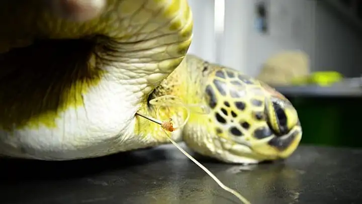 Muğla'nın Dalaman ilçesinde yaralı halde bulunan yeşil deniz kaplumbağası, İztuzu sahilindeki Deniz Kaplumbağaları Araştırma Kurtarma ve Rehabilitasyon Merkezi'nde (DEKAMER) tedavi ediliyor.