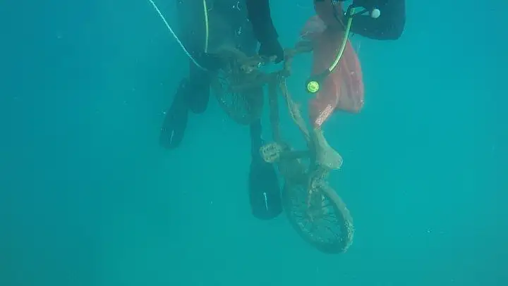 Muğla'nın Marmaris ilçesinde deniz dibi temizliği yapan dalgıçlar alışveriş arabasından araç lastiklerine, şişelerden sandalyeye kadar çok sayıda atık çıkardı. Ekipleri ve vatandaşları en çok şaşırtan ise denizden çıkarılan bisiklet oldu.