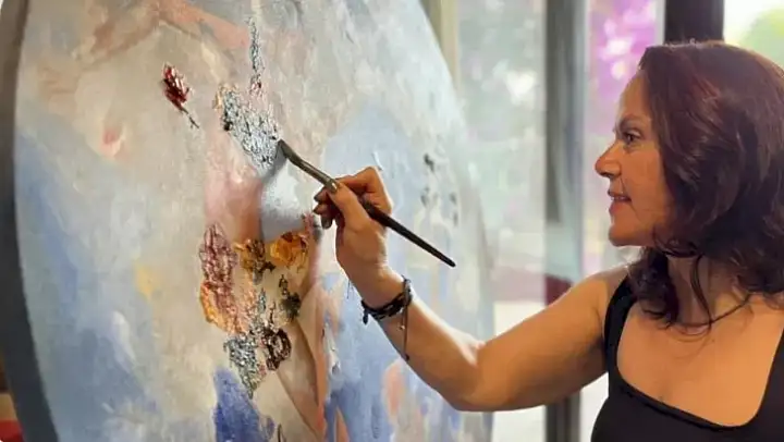 “En çok, yaşanmışlıklarımın derinliklerinden öğrendim. Kimi zaman kayboldum, kimi zaman güçlendim ve duygularımı,hakkını vererek yaşamayı öğrendim. Yaşadığımız her an evrende bir iz bırakıyor.” diyen sanatçı, hayatın arka planına dair fark ettiğimiz veya fark edemediğimiz izleri de uçuşan renkler, dans eden figürler ve semboller olarak çalışmalarına yansıtıyor.