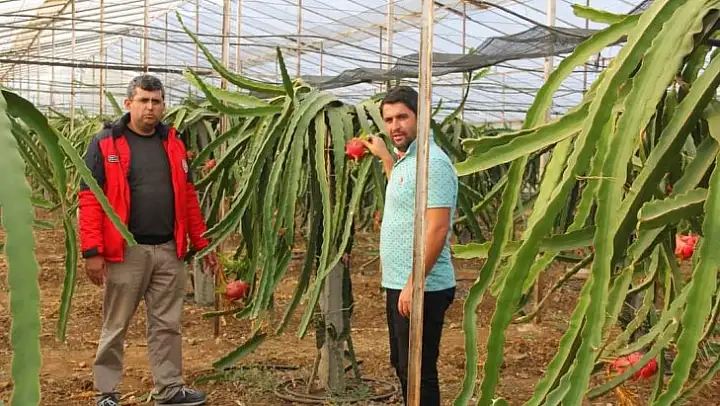 Fethiye'ye bağlı Eldirek Mahallesi'nde çiftçilik yapan Kenan Türkoğlu domates üretiminin çok masraflı olduğunu ifade ederek üretim maliyetleri düşük olduğunu ifade ettiği ejder meyvesi üretmeye başladı.