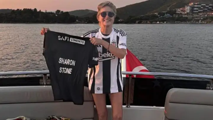 Muğla'nın Bodrum ilçesinde tatil yapan dünyaca ünlü aktris Sharon Stone Beşiktaş formasıyla poz verdi.