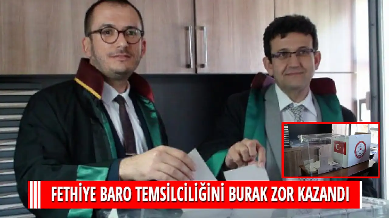 Fethiye Baro Temsilciliğini Burak Zor kazandı. Avukat Zor, 311 oyun 166'unu alarak rakibini 21 oyla geçti. İki adayın girdiği seçimde Avukat İsmail Alper Görgülü ise 137 oy alırken 8 ayda geçersiz sayıldı.