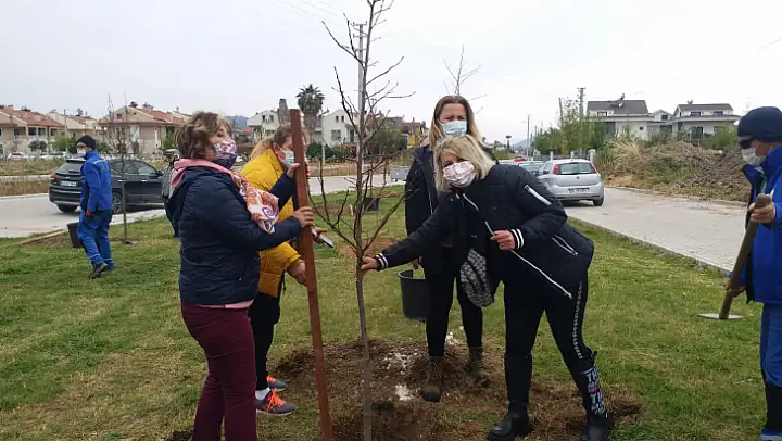 Fethiye Belediyesi Park ve Bahçeler Müdürü Durmuş Sazcı, CHP Fethiye Kadın Kolları Başkanı Gülümser Oymak ve kadın kolları üyelerinin katıldığı ağaç dikiminde 14 ağacın dikimi yapıldı.