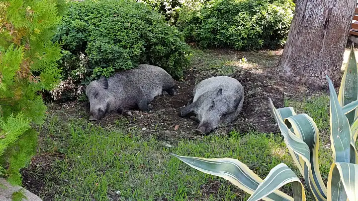 Atatürk Caddesi'nde Çarşı'nın merkezinde bulunan yeşil alana gelen bir domuz sürüsü, gündüz saatlerinde burada uyurken görüntülendi. Çevredeki vatandaşların şaşkın bakışları arasında hiçbir tehlike sezmeden çimlerin üzerine yayılan domuzlar, bir süre güneşin altında uyudu. Şehir merkezine bu denli yaklaşan yaban domuzlarının rahat tavırları dikkat çekerken, bazı esnaf ve turistler cep telefonlarıyla bu anları kayda aldı.