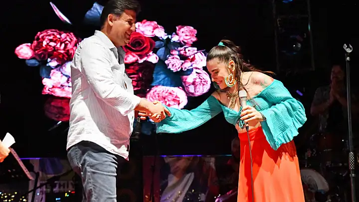 Fethiye'de olmaktan ve binlerce kişi ile bir araya gelmekten büyük mutluluk duyduğunu ifade eden Ceylan Ertem, Beşkaza Meydanı'nı dolduran vatandaşları hem hüzünlendirdi, hem oynattı. Fethiye Belediye Başkanı Alim Karaca, Ertem'e çiçek takdim ettikten sonra Fethiyelilere seslendi.