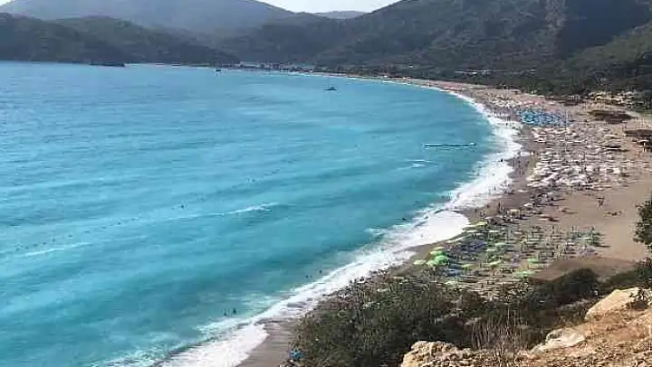 Fethiye ilçe merkezine 13 kilometre uzaklıktaki Ölüdeniz Plajı'nda denizin rengi görenleri şaşırttı. Tatile gelenler ise bu manzarayı bol bol fotoğrafladı. Geçtiğimiz yıl yağış sonrası denizin rengi turkuaz renk alırken, bu yıl ise hava sıcaklıkları mevsim normallerinin üstünde geçmesine bağlanan renk değişimi, dalgalar ile birleşince eşsiz bir görüntü oluşturdu. Yaz sezonunu henüz kapatmamış çok sayıda yerli ve yabancı turist, Ölüdeniz'deki eşsiz manzarayı kaçırmayıp, fotoğraf çekmeyi ihmal etmedi.