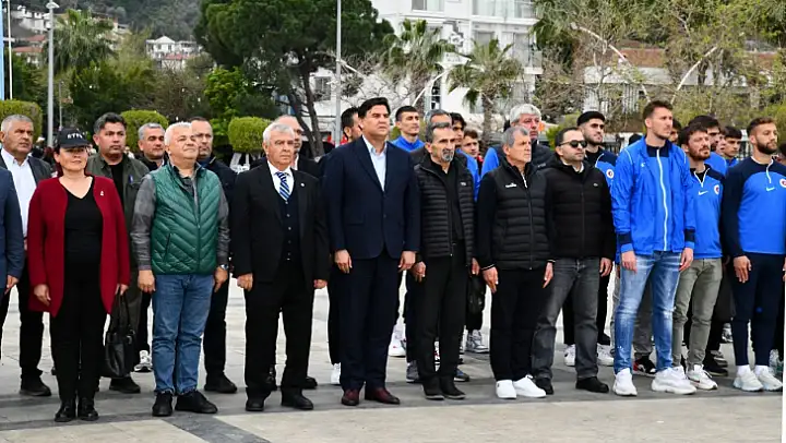Fethiyespor Kulübünden Fethiye Belediye Bandosu eşliğinde Beşkaza Meydanı Atatürk Anıtı önüne kadar yürüyüş düzenlendi. Fethiye Belediye Başkanı Alim Karaca, Fethiyespor Başkanı Esat Bakırcı, teknik direktör Erhan Altın, lacivert beyazlı bir grup futbolcu ve alt yapı ve akademi sporcuları ile yöneticiler ve kulüp çalışanları katıldı.