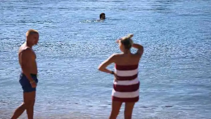 Muğla'nın Bodrum ilçesinde dün akşam saatlerinde aniden bastıran yağmurun ardından sabah açan güneşle birlikte az sayıda vatandaşlar denize girdi, bazı vatandaşlar ise sıcak havanın tadını doyasıya çıkardı.