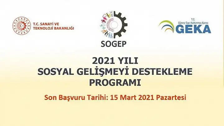 Güney Ege Kalkınma Ajansı, Güney Ege'deki sosyal sorunların çözümüne katkı sağlamak amacıyla Sanayi ve Teknoloji Bakanlığının koordinasyonunda yürüttüğü 2021 yılı Sosyal Gelişmeyi Destekleme Programı (SOGEP) için 15 Mart 2021 tarihine kadar proje önerileri bekliyor.