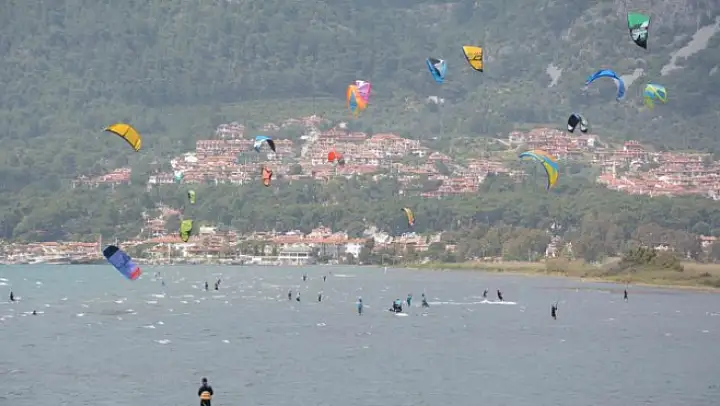 Dünya üzerinde ilk üç kitesurf merkezinden biri olan Gökova Körfezi'nin Akçapınar Sahili, adrenalin tutkunlarının akınına uğruyor.