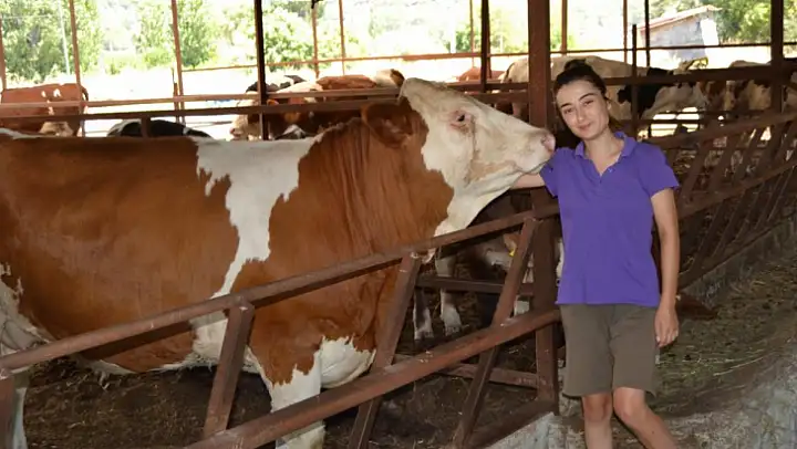 Muğla'nın Seydikemer ilçesinde Şerife Yılmaz isimli genç kızın ailesine ait çiftlikte inek ile çektiği selfie videosu sosyal medyada viral oldu. Yılmaz'ın sosyal medya hesabında paylaştığı videoda 'Hadi selfie çekilelim' dediği inek, koşa koşa gelerek kameraya poz veriyor.