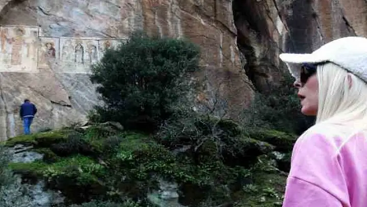 Kayanın üzerinde Hazreti İsa'nın yakalanması, çarmıha gerilmesi, Hz. Meryem ve azizler, Hz. İsa ve çocukların resimlerinin yer aldığı renkli figürler bulunuyor.