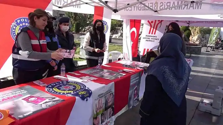 BM Genel Kurulu kararı ile 25 Kasım Kadına Yönelik Şiddete Karşı Uluslararası Mücadele Günü, 1999 yılında kadına yönelik şiddete karşı toplumda farkındalık oluşturmak amacıyla ilan edildi. Marmaris'te de kadın jandarmalar, polisler ve sosyal hizmet görevlileri standı ziyaret eden kadınlara KADES (Kadın Acil Destek) uygulaması üzerinden hemen yardım çağırabileceklerini, sosyal hizmetler görevlileri olarak her zaman destek olacaklarını belirtti.