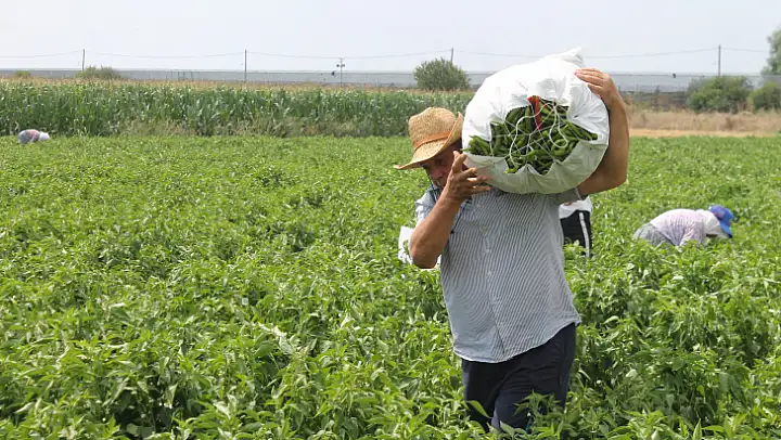 Edirne'de 40 dereceyi bulan sıcağın altında ciğerin can yoldaşı patentli ve tescilli Karaağaç biberinin hasadı 100 tarım işçisiyle başladı.