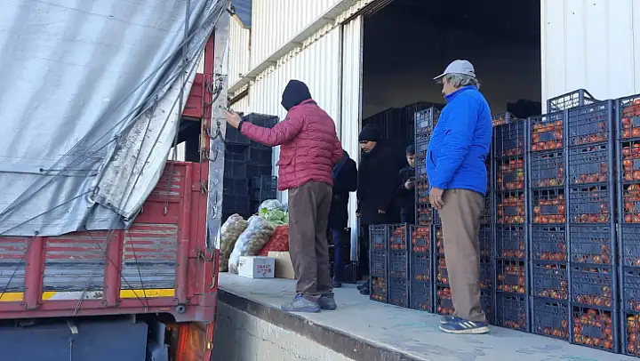 Karaçulha Toptancı Hali'nde sabah saatlerinden itibaren afet bölgesine gönderilmek üzere meyve ve sebze yardımı için çalışmalar sürüyor.