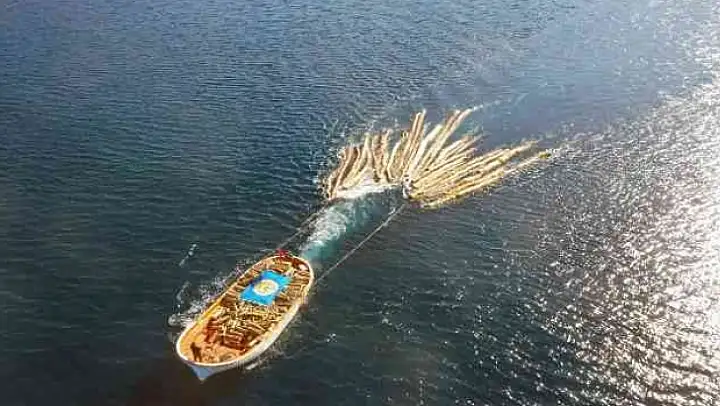 Deniz kenarında sıralama yapılarak bağlanan tomruklar denizden Kille Koyu'na taşınıyor. Martı Koyu'ndan Kille Koyu'na yaklaşık 5 mil deniz üzerinde taşınan tomruklar buradan kamyonlara yüklenerek orman deposuna nakliyatı yapılıyor.