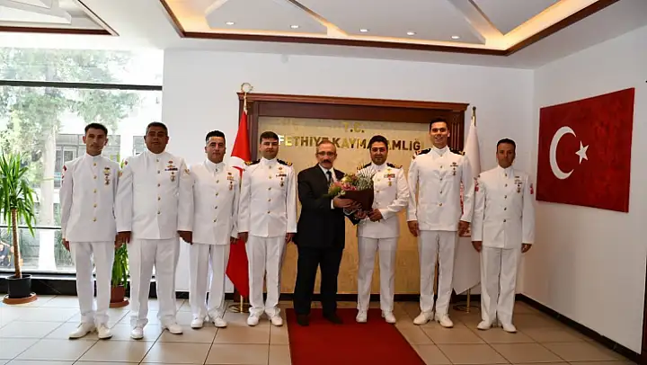 Fethiye Kaymakamı Yusuf İzzet Karaman, Sahil Güvenlik Komutanlığı'nın 41. Kuruluş Yıl Dönümü münasebetiyle Fethiye Sahil Güvenlik Karakol Komutanı Sn. Erdal Kıreker ve beraberindeki heyeti kabul etti.