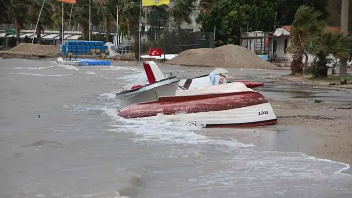 Muğla'nın Bodrum ilçesinde etkili olan fırtına nedeniyle balıkçı kayıkları alabora oldu, tekne karaya sürüklendi, feribot seferleri yapılamadı. Balıkçılar, teknelerinin batma ihtimaline karşı nöbet tuttu.