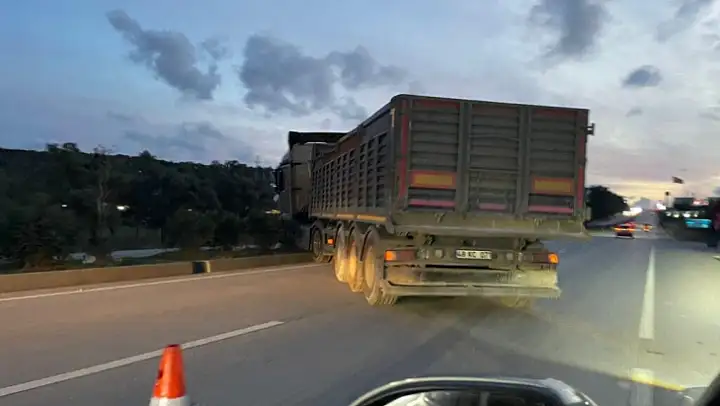 Muğla'nın Milas - Bodrum Karayolu'nda seyir halindeyken kontrolden çıkan tır, refüjde asılı kaldı.