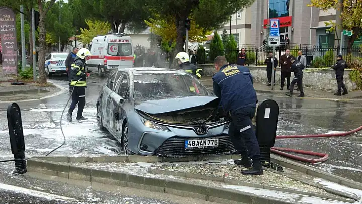 Olay, Orhaniye Mahallesi Menteşe Kaymakamlığı önünde öğle saatlerinde meydana geldi. Edinilen bilgiye göre, seyir halindeki 48 AAN 776 plakalı otomobilde yangın çıktı. Otomobilden alevlerin yükseldiğini gören vatandaşlar durumu 112 Acil Çağrı Merkezi'ne bildirdi. İhbar üzerine bölgeye itfaiye, polis ve sağlık ekipleri sevk edildi. Kısa sürede olay yerine gelen Muğla Büyükşehir Belediyesi Menteşe İtfaiye Grup Amirliği ekipleri yangına müdahale ederek söndürdü. Yangının LPG kaçağından çıktığı iddia edilirken, vücudunda hafif yanıklar meydana gelen araçtaki A.Y.T. ve B.A. ambulansla hastaneye kaldırıldı. Hastanede tedavi altına alınan yaralıların hayati tehlikelerinin bulunmadığı öğrenildi.