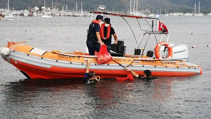 Muğla Çevre ve Şehircilik İl Müdürlüğü, Sahil Güvenlik Güney Ege Grup Komutanlığı ve İl Emniyet Müdürlüğü Sualtı Grup Amirliği (Deniz Polisi) iş birliğiyle Marmaris körfezinde dip temizliği yapıldı.